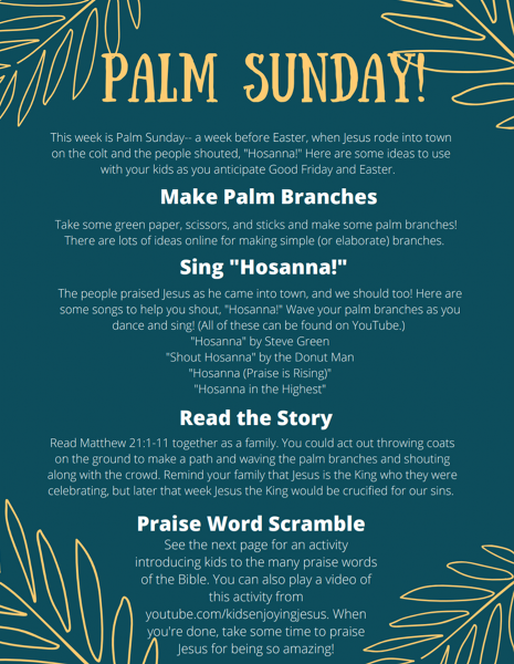 In conclusion, Palm Sunday is a time for families to come together and reflect on the teachings of Jesus. By incorporating these printable activities into your Palm Sunday celebrations, you can make the day more meaningful and enjoyable for kids. So, print out these resources, gather your little ones, and have a fun-filled Palm Sunday learning experience!