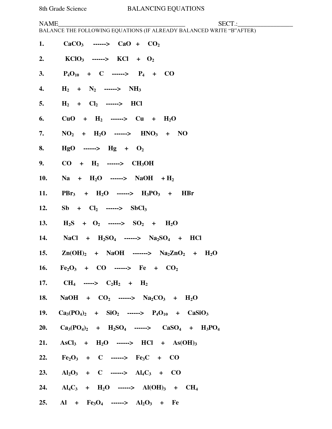 6 Best Images Of Balancing Chemical Equations Worksheet Easy Balancing