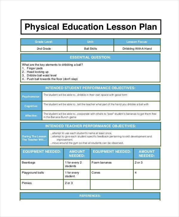 Download and Print pe lesson plan template Listed below