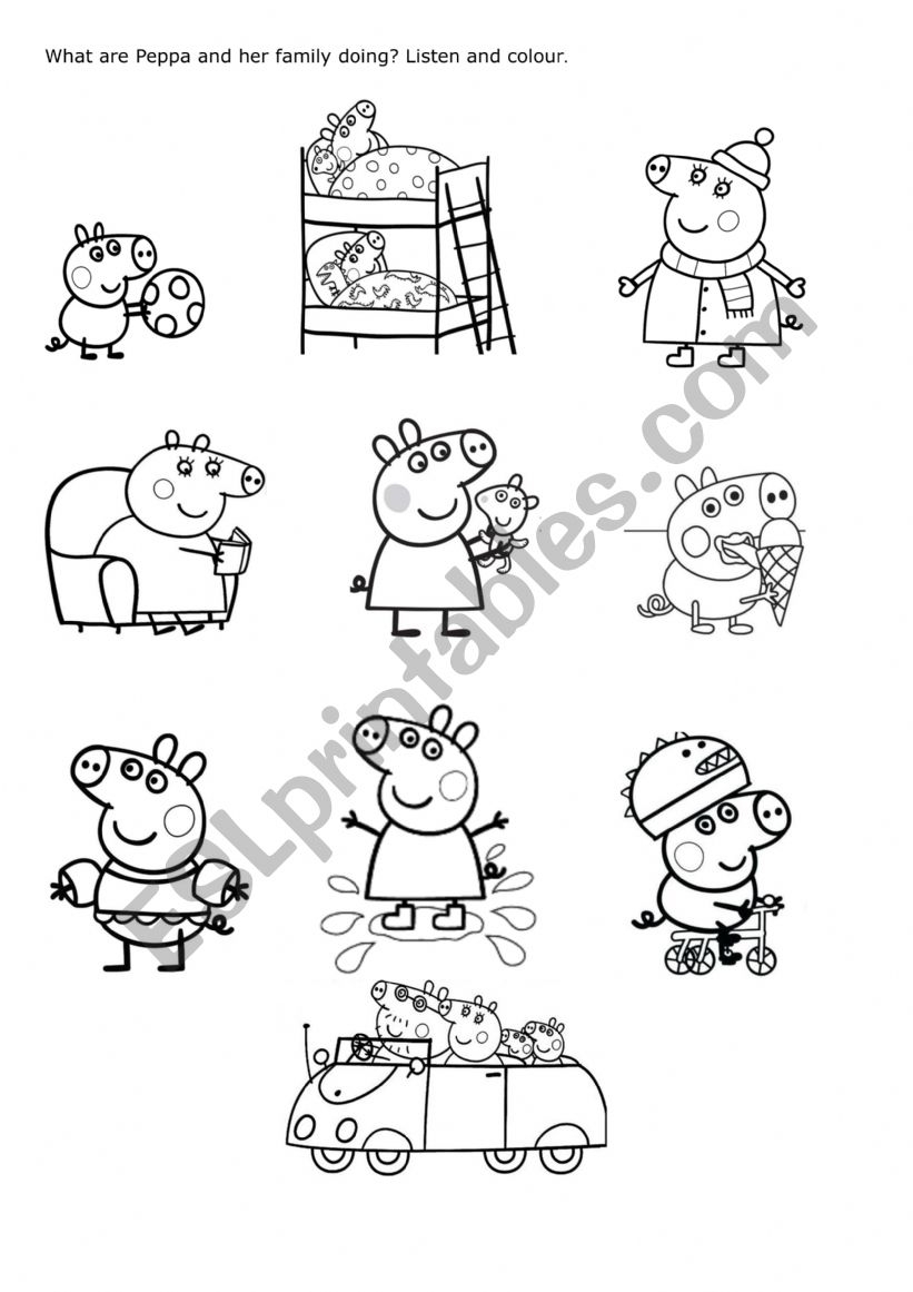 One popular Peppa Pig printable activity is coloring pages. These pages feature various characters from the show, such as Peppa, George, and their friends. Children can use crayons, markers, or colored pencils to bring these characters to life with their own unique color combinations. Coloring can also help children improve their hand-eye coordination and focus.