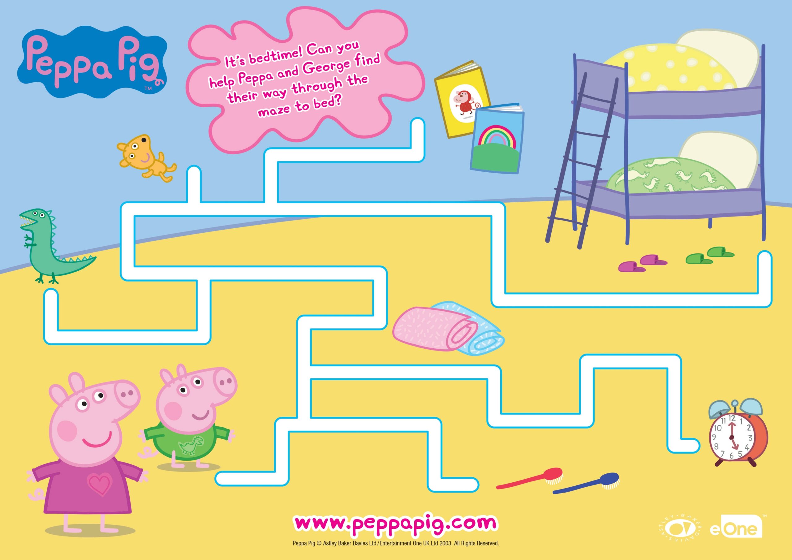 Another fun activity is a Peppa Pig maze. Children can help Peppa find her way through the maze to reach her friends or favorite activity. Mazes are a great way for children to practice problem-solving and critical thinking skills in a fun and engaging way. They can also help improve children’s spatial awareness and concentration.