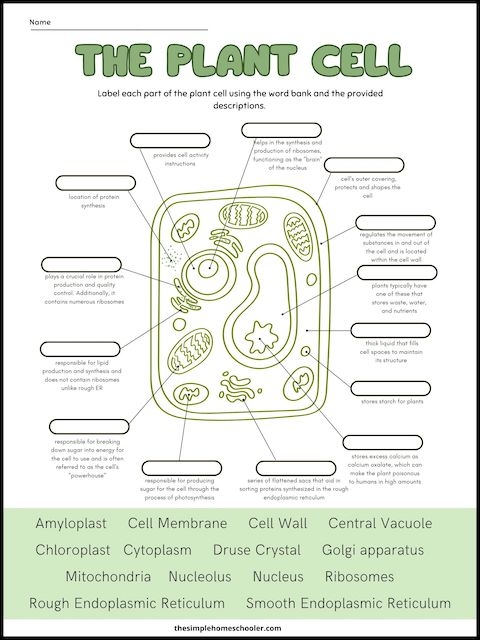 Free Plant Cell Worksheets With Answer Key The Simple Homeschooler