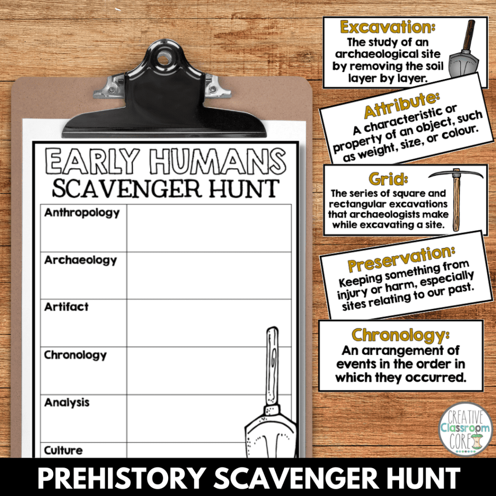 Additionally, printable scavenger hunts can be a fun and educational way for students to explore prehistoric artifacts and archaeological sites. Students can work in small groups to solve clues and locate hidden objects related to prehistory, such as stone tools, pottery fragments, and fossilized remains. This activity encourages teamwork and critical thinking skills while allowing students to interact with primary sources in a hands-on way.