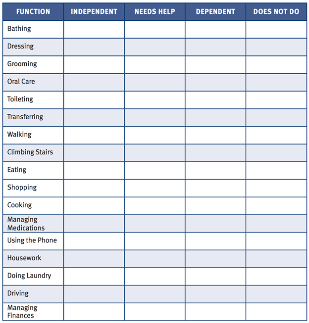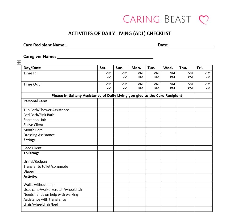 Printable Activities Of Daily Living Checklist Printable Word Searches