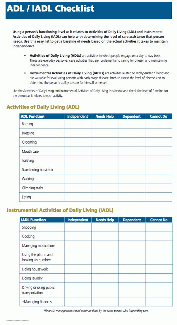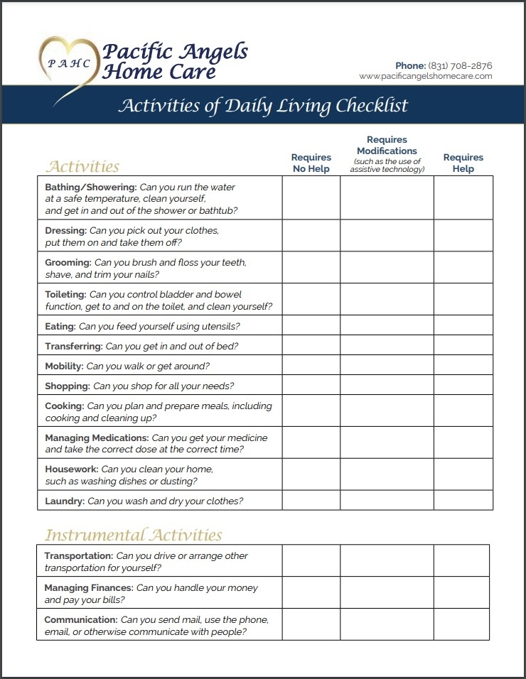 Printable Activities Of Daily Living Checklist Printable New Year Banners