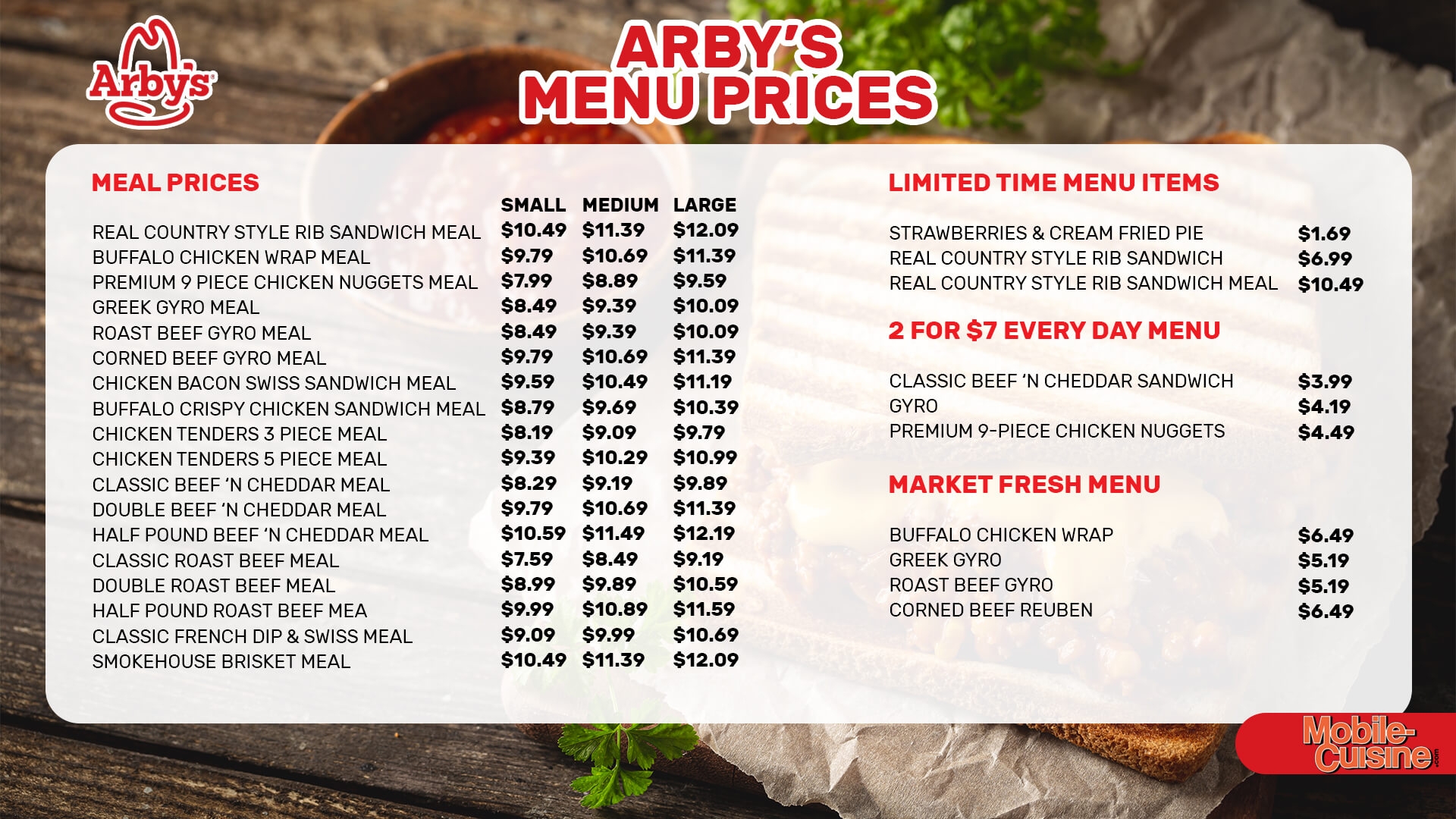 Download and Print printable arby’s menu with pictures and prices pdf Listed below