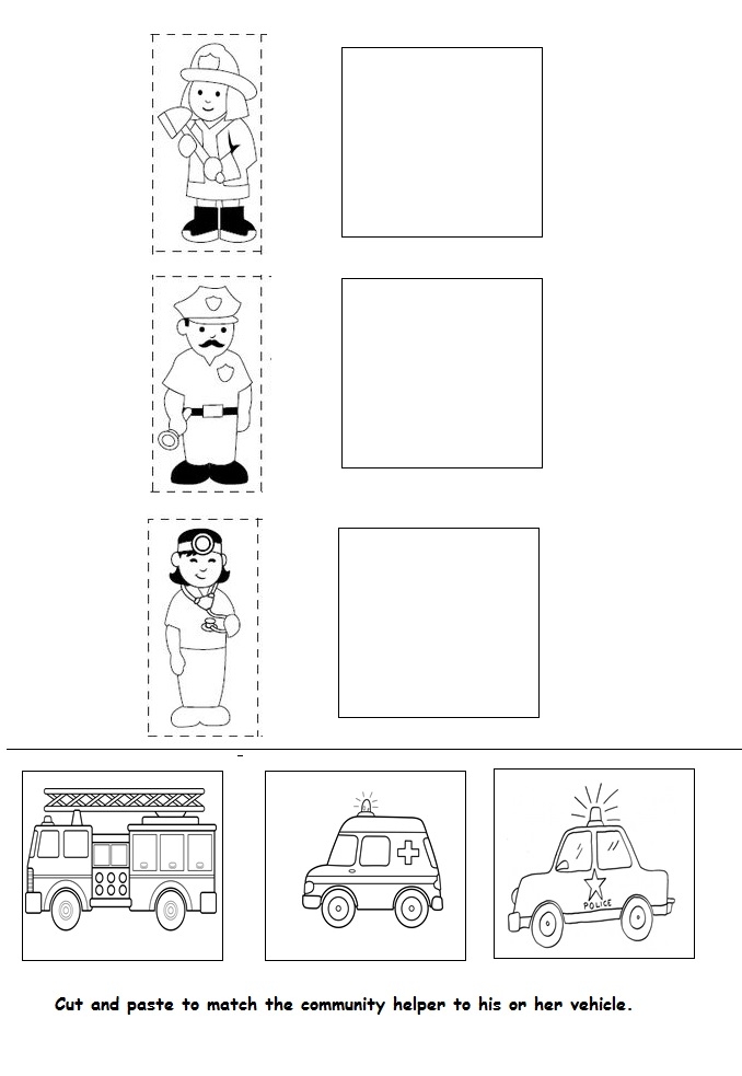 1. Matching Game: Create a printable matching game where children can match the community helper with their corresponding tools or vehicles. This activity helps kids understand the roles of different helpers and the equipment they use in their jobs.