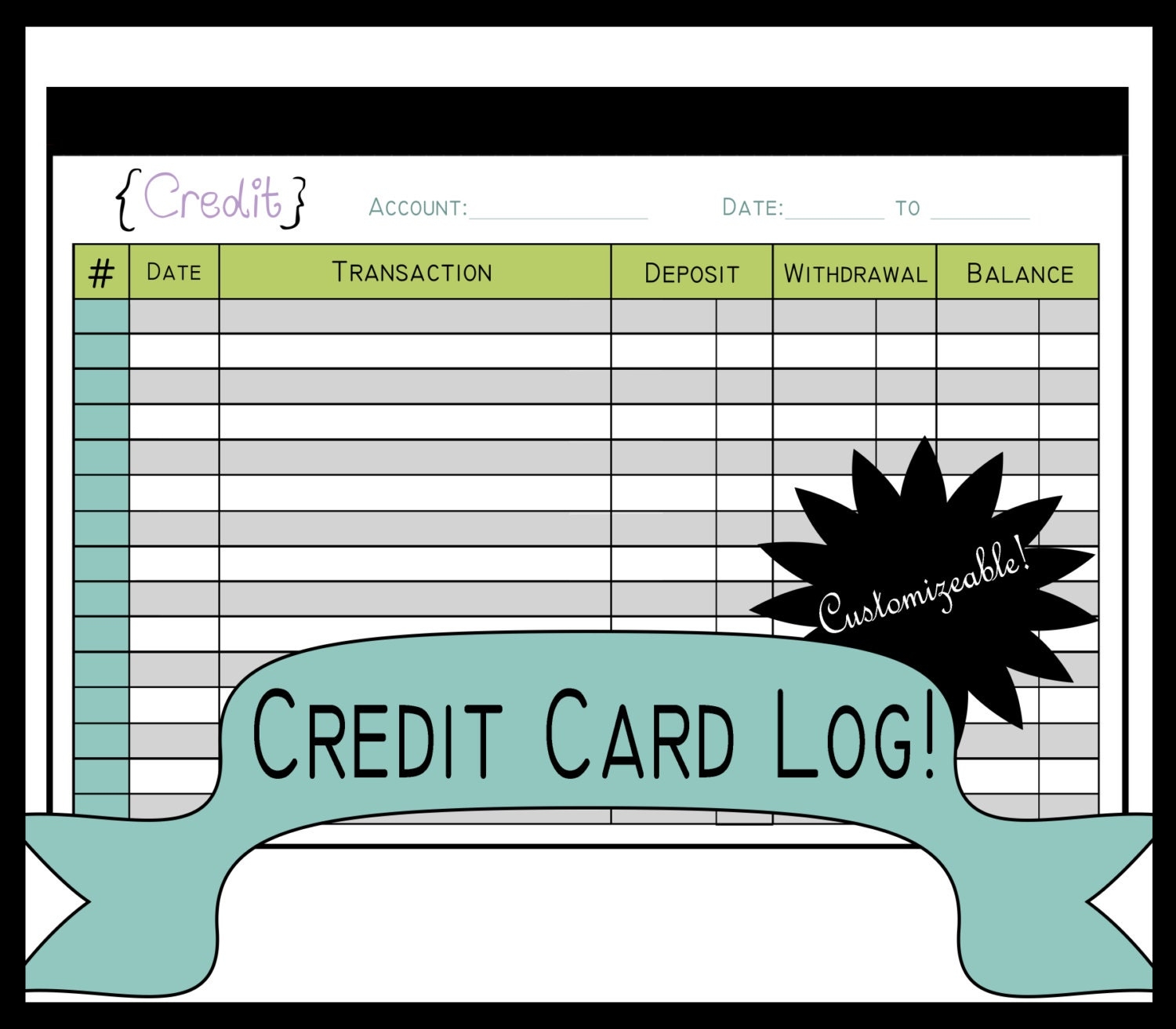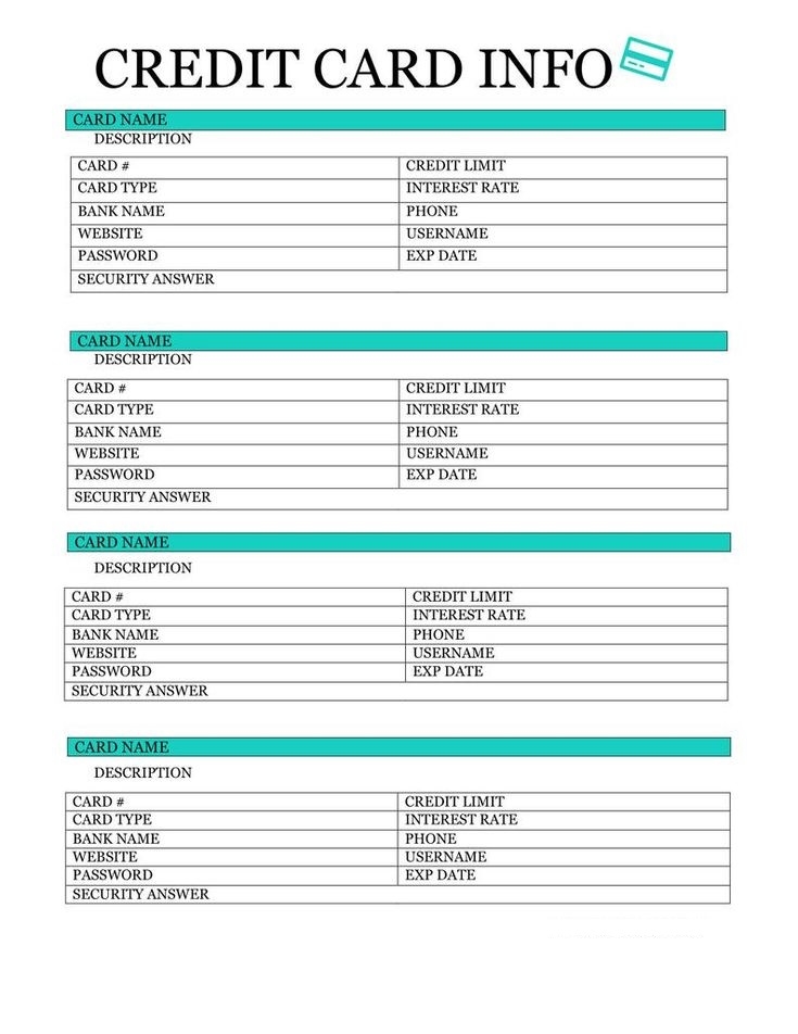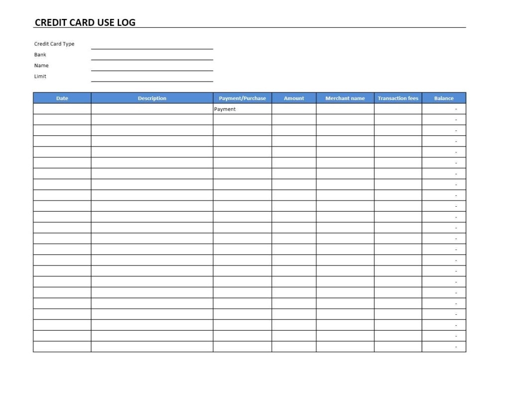 Printable Credit Card Log Template