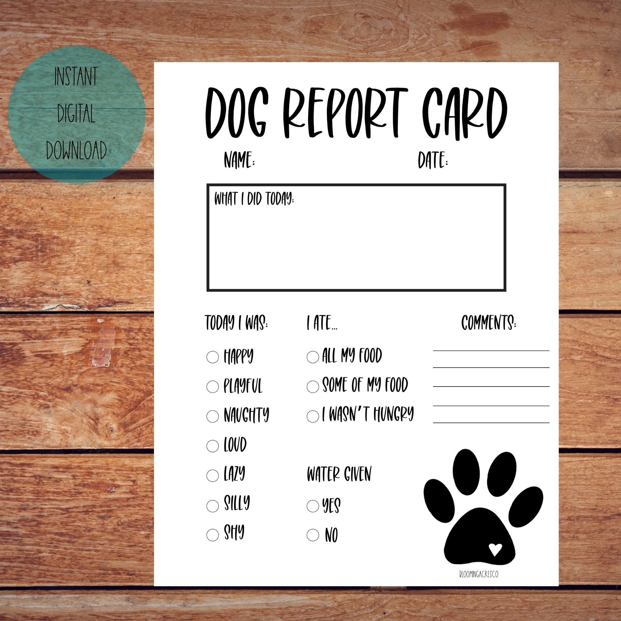 Printable Dog Daycare Report Card Template Free Printable