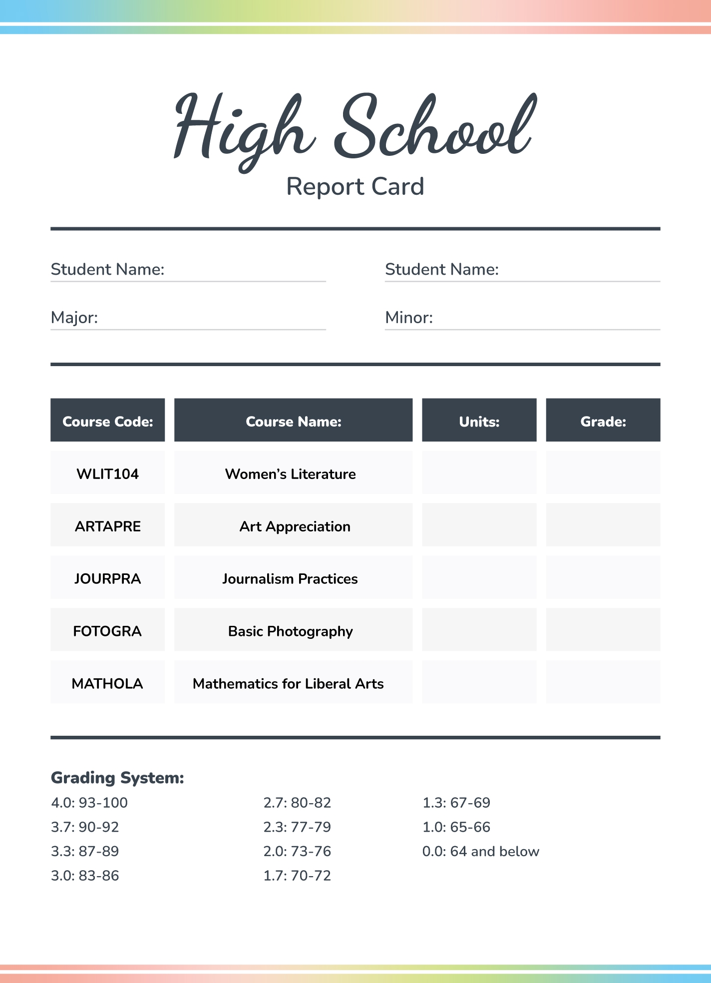Printable Downloadable Report Card Template