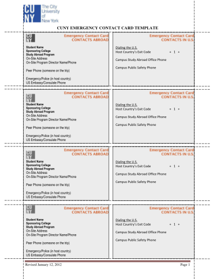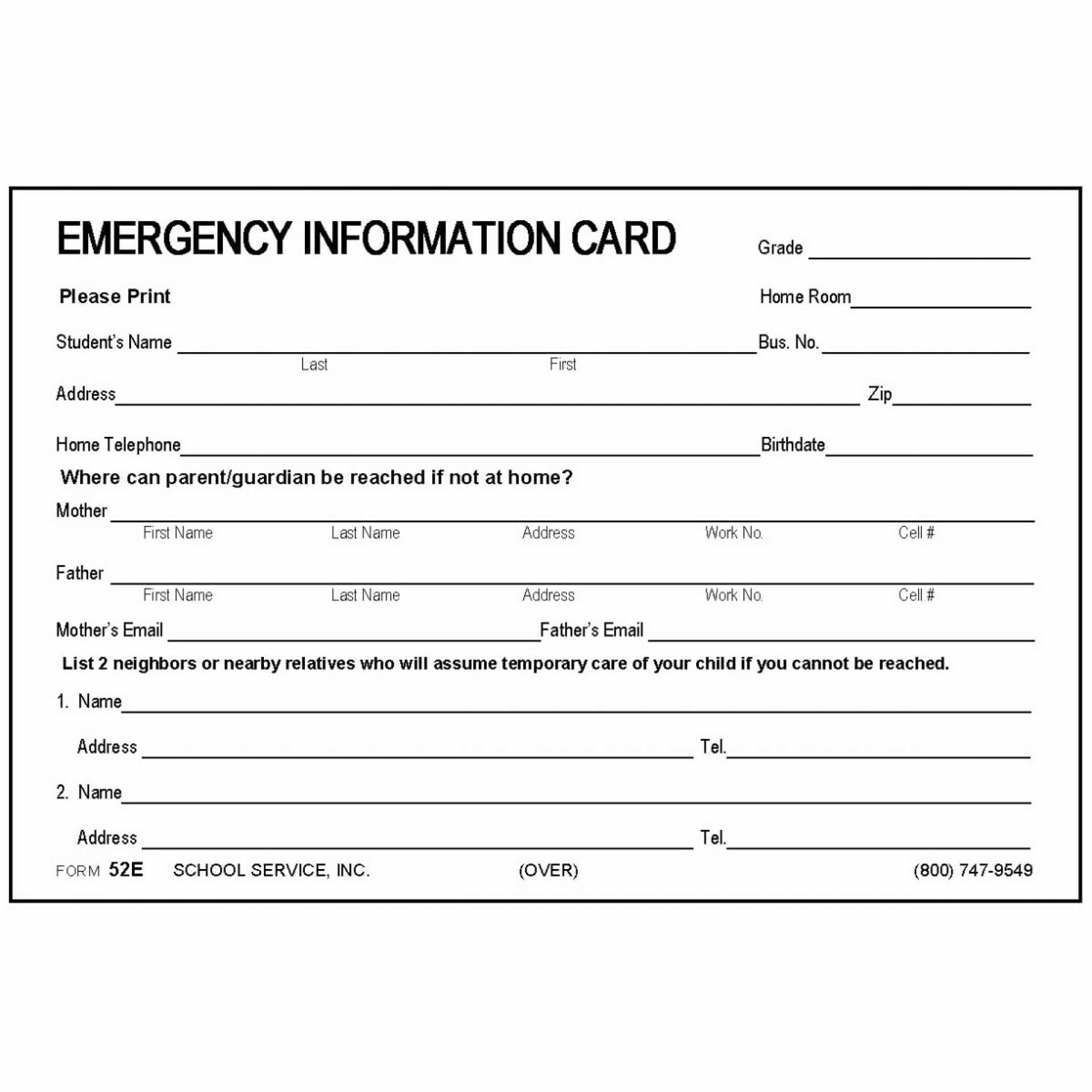 Printable Free Emergency Contact Card Template