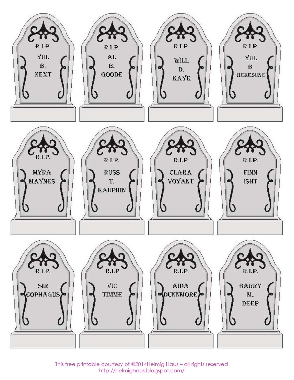 These printable tombstone designs templates are easy to use and can be customized to fit your style. Simply download the template, print it out, and cut along the lines to create your own personalized tombstones. From classic RIP designs to funny puns, there is something for everyone to enjoy.