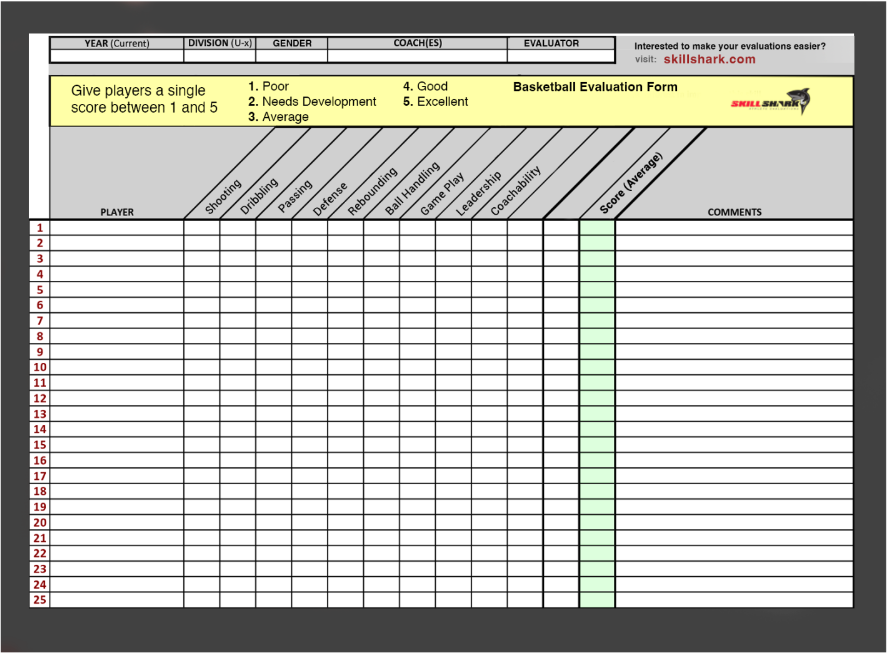 Free Printable Basketball Evaluation Forms Printable Forms Free Online