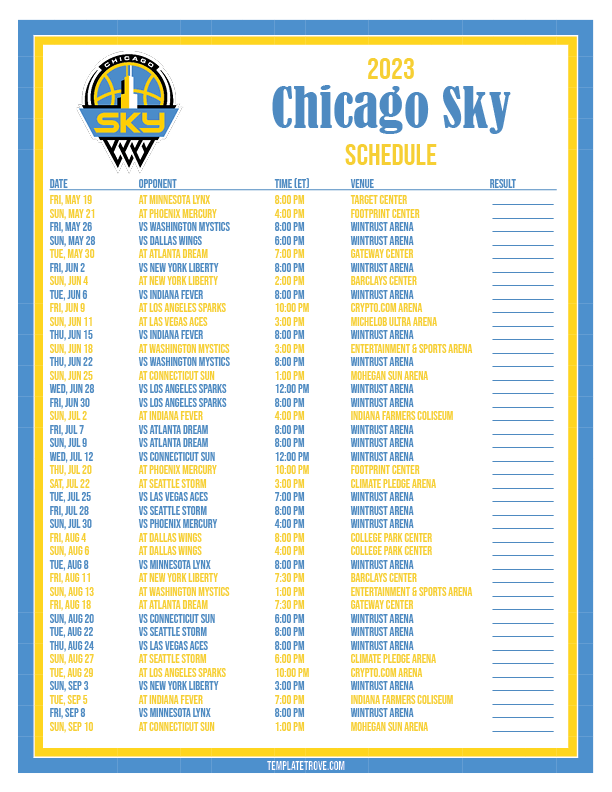 Printable2023 Chicago Sky Basketball Schedule