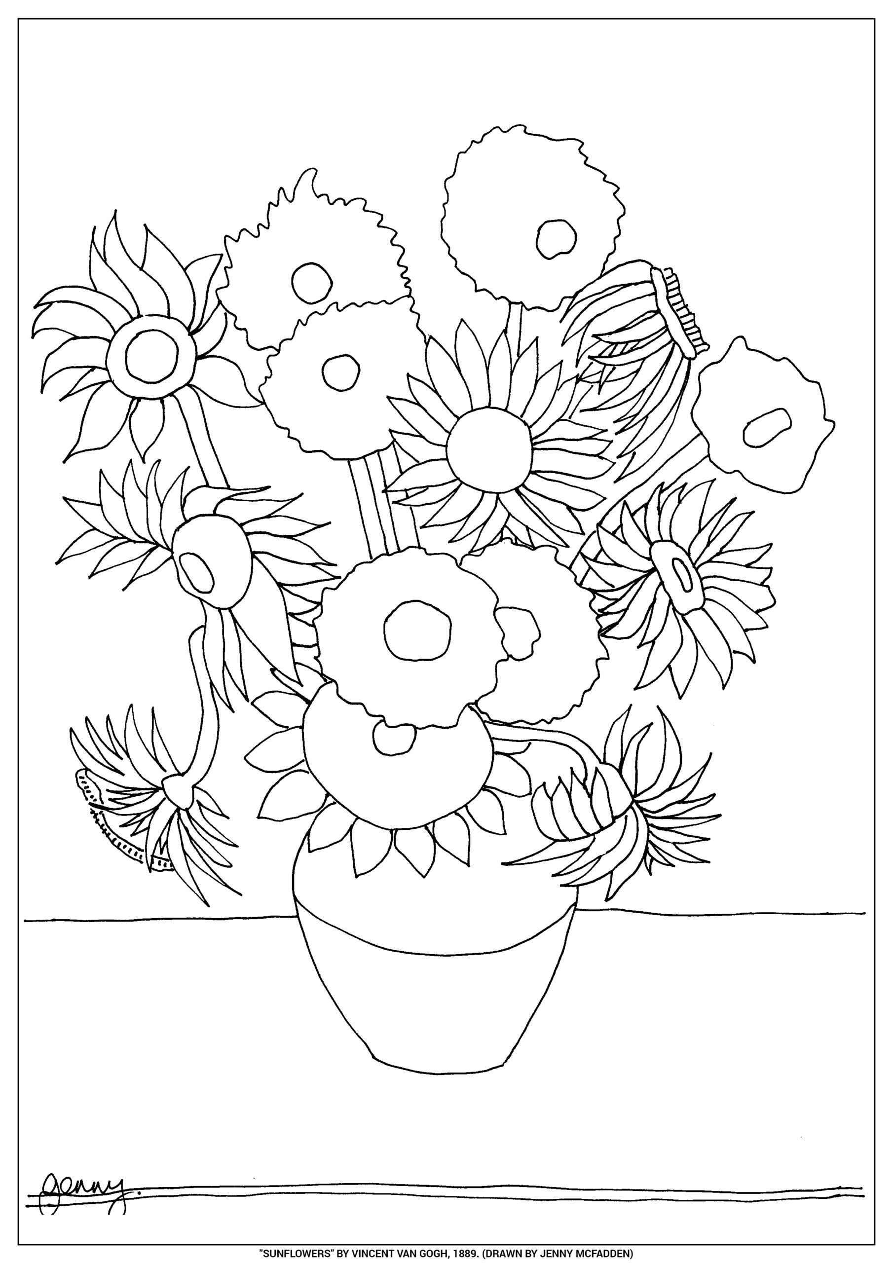 Sunflowers By Vincent Van Gogh Coloring Page Free Printable Coloring