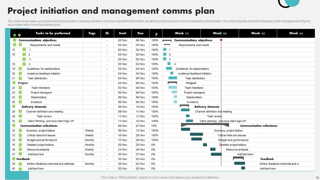 - Communication Schedule: Establish a timeline for when key messages will be communicated to stakeholders, including milestones, deadlines, and important updates.