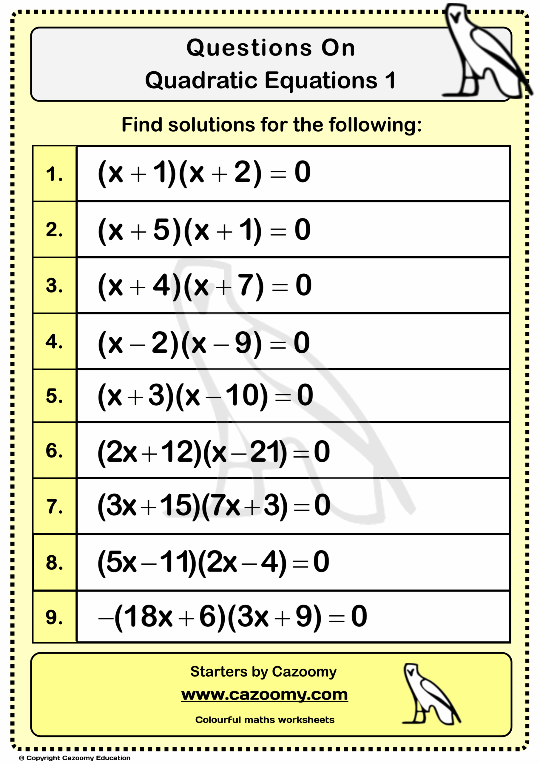 Quadratic equations are an essential part of algebra, and mastering them is crucial for success in higher math courses. One way to practice and improve your skills in solving quadratic equations is by using worksheets. These worksheets provide a structured approach to learning and allow you to practice solving various types of quadratic equations.