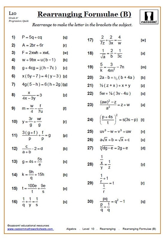 Download and Print rearranging equations worksheet Listed below