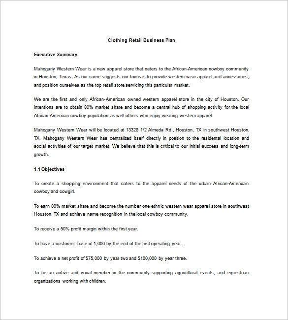 Retail Shop Business Plan Template