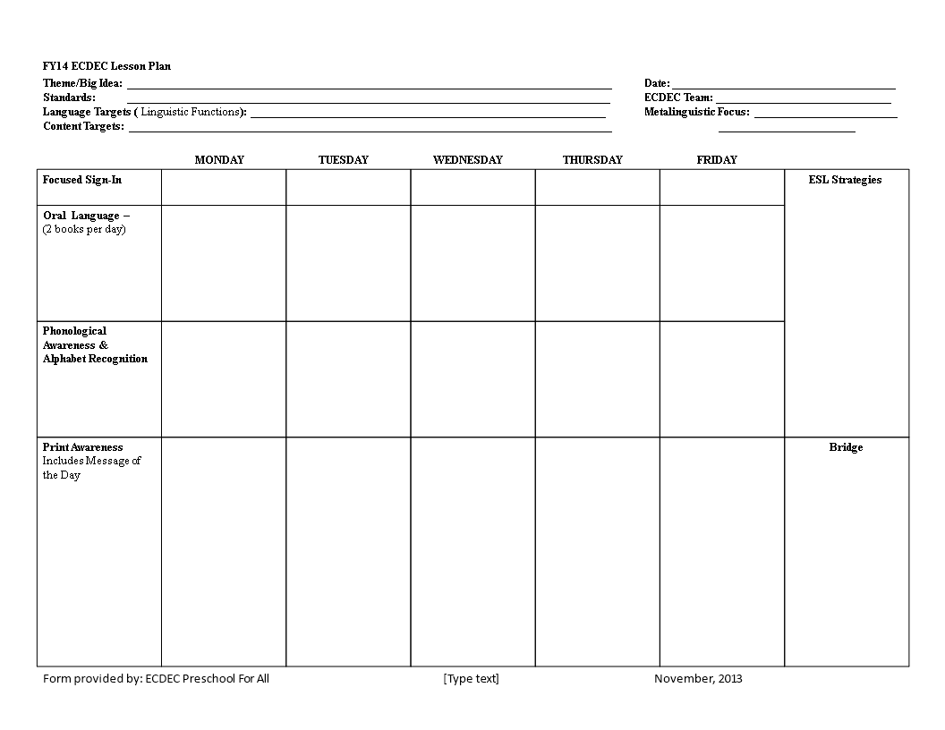 Sample Lesson Plan Template