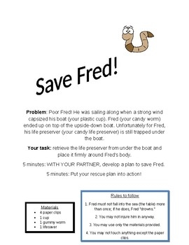 The premise of the Save Fred activity is simple yet challenging. Fred the worm has found himself in a precarious situation – stuck on his overturned boat and in need of rescue. It is up to the players to save Fred by using only four paperclips to flip his boat upright without touching Fred, the boat, or the water.