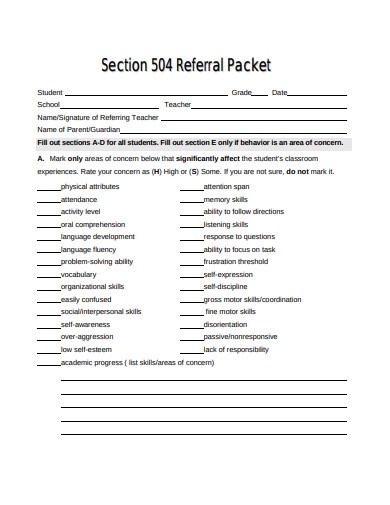 11 School 504 Plan Templates In PDF DOC