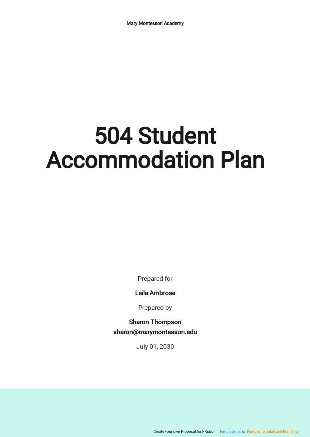 Elementary School 504 Plan Template Google Docs Word Apple Pages