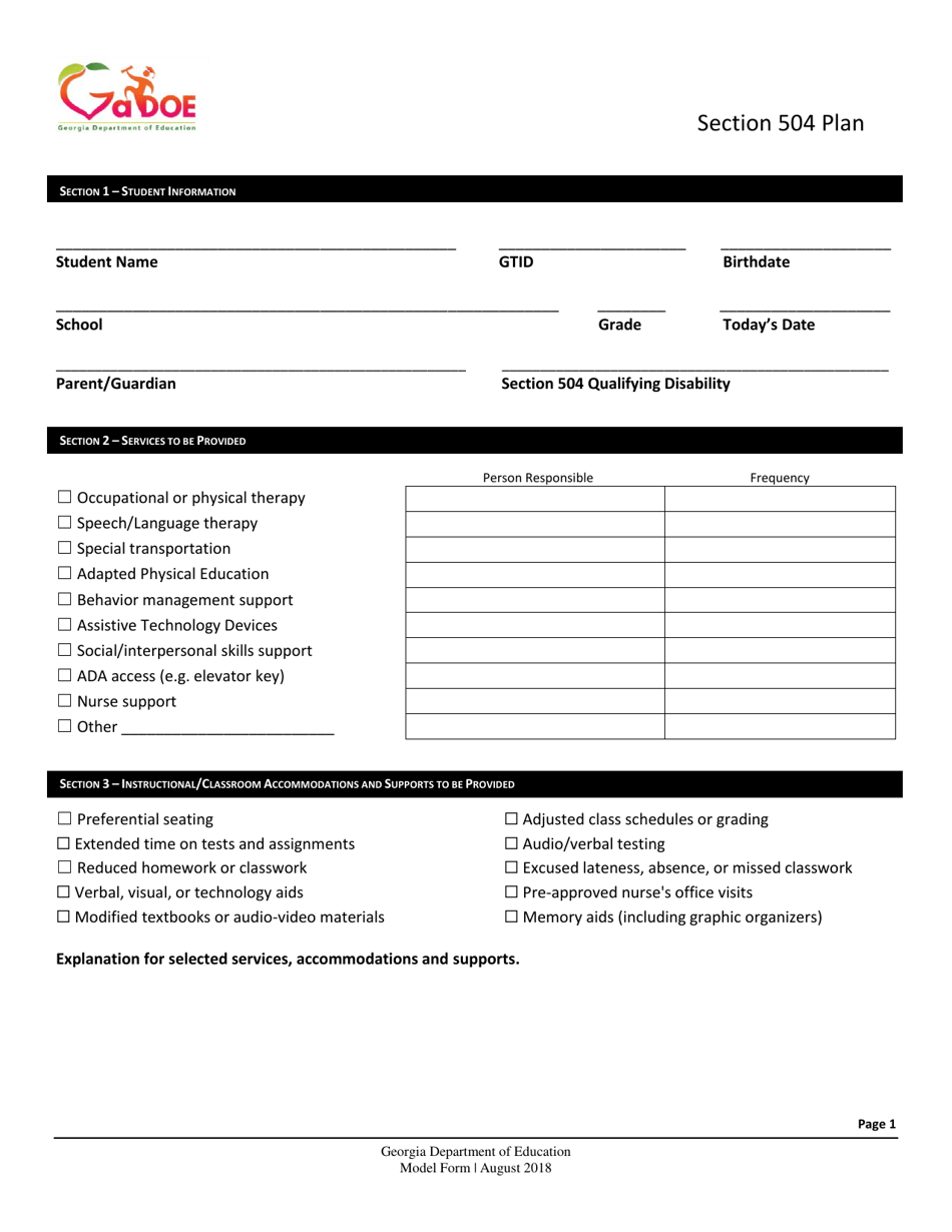 Georgia United States Section 504 Plan Fill Out Sign Online And