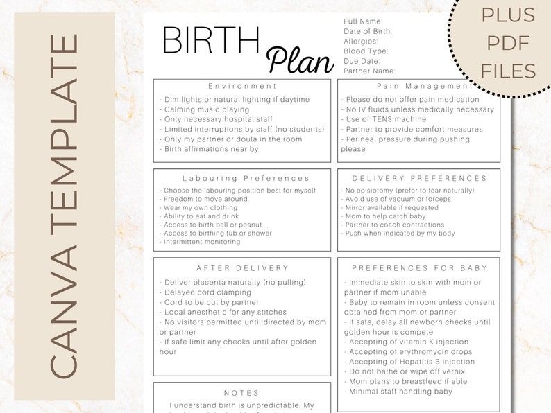 Remember, this is just a starting point. Feel free to customize your birth plan template to include any additional preferences or considerations that are important to you.