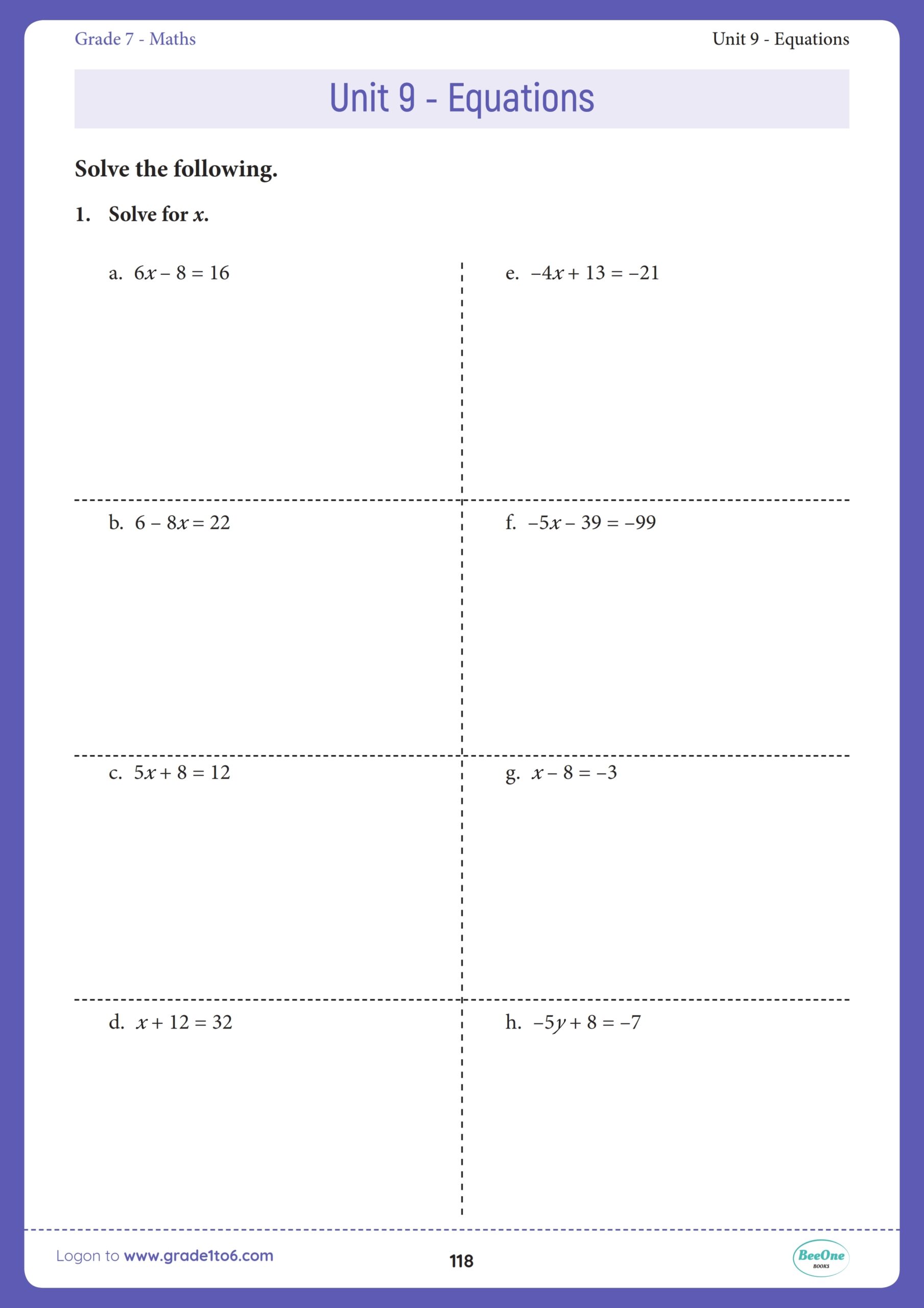 Download and Print simple equations worksheet Listed below