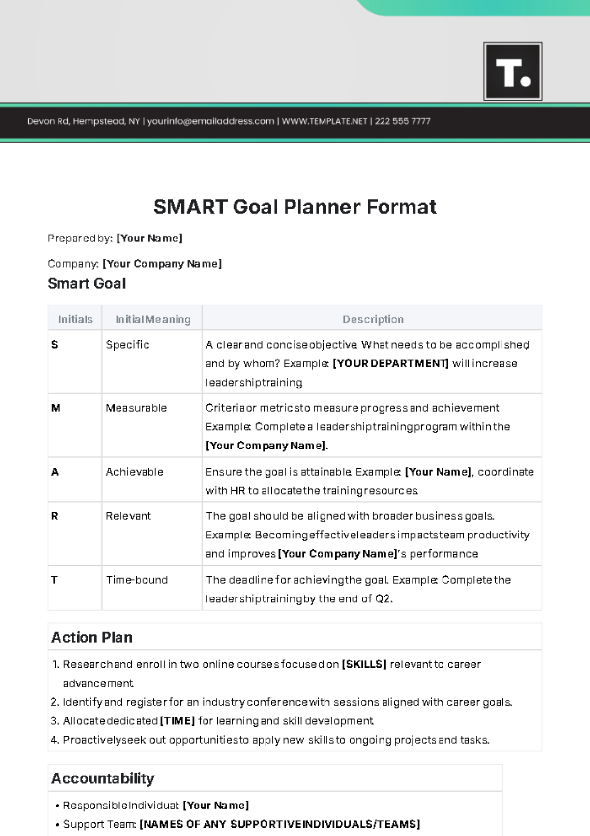A smart goal planning template is a tool that helps you set specific, measurable, achievable, relevant, and time-bound goals. By following this template, you can ensure that your goals are well-defined and actionable. Here is a simple template that you can use to plan your goals: