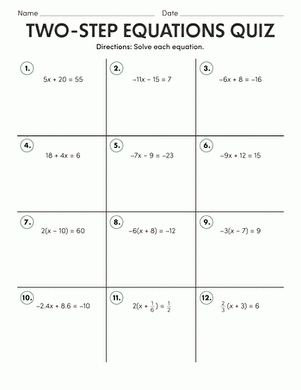 Solve Two Step Equations Quiz Worksheet Education Worksheets