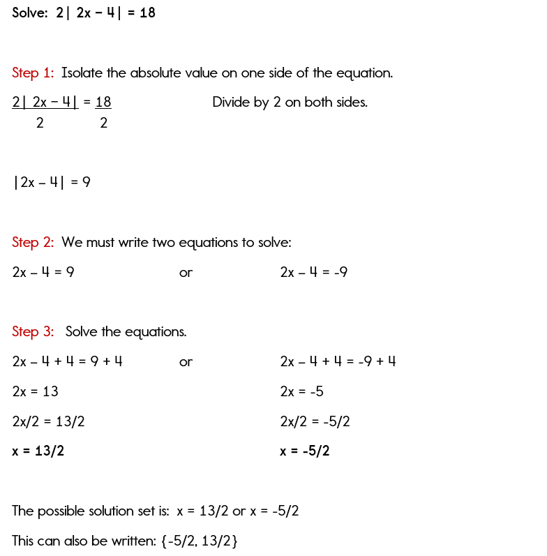 One common type of absolute value equation that students encounter in worksheets is |x| = a, where a is a constant. To solve this type of equation, students need to consider both the positive and negative values of a to find all possible solutions. For example, if |x| = 5, the solutions would be x = 5 and x = -5.