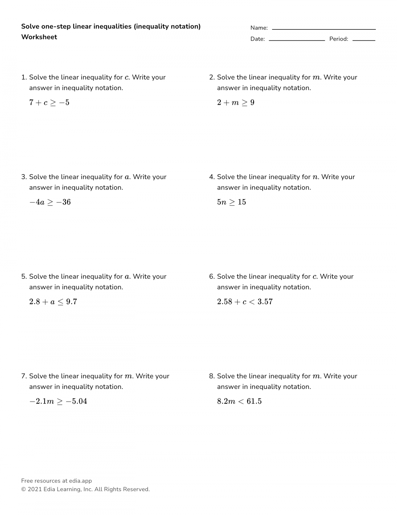 In conclusion, solving equations and inequalities worksheet PDF with answers are a valuable resource for students looking to improve their math skills. By practicing with these worksheets, students can enhance their problem-solving abilities, gain a better understanding of mathematical concepts, and build a strong foundation for future math courses. Whether used as a supplement to classroom instruction or as a self-study tool, worksheets with answers can help students achieve success in math.