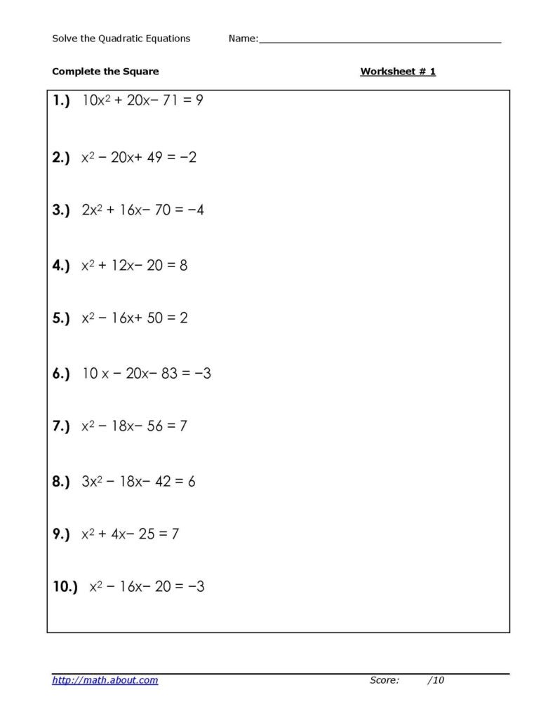 Solving Quadratic Equations Worksheets Worksheets For Kindergarten