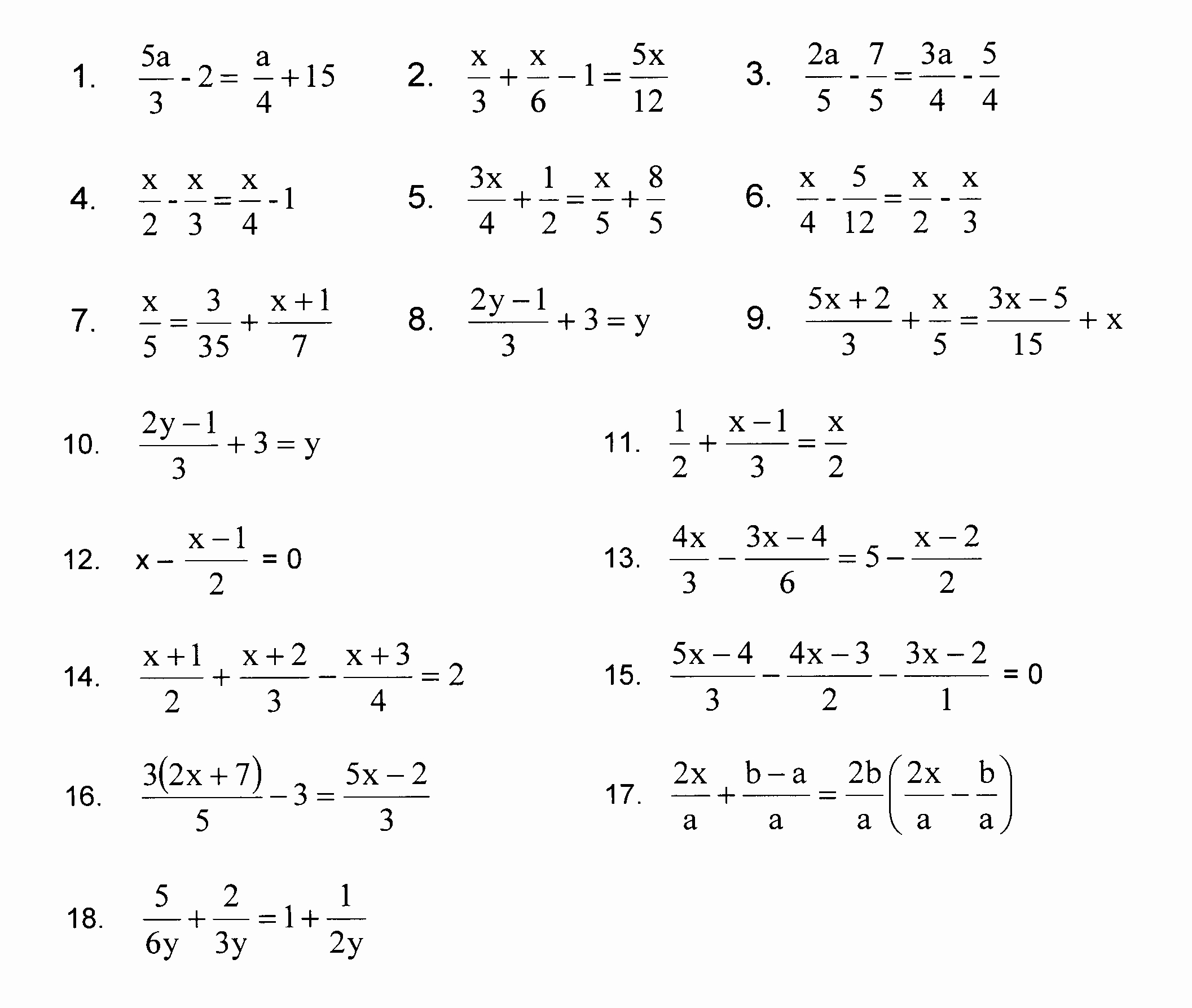 Free Solving Equations Involving Fractions Worksheet Download Free