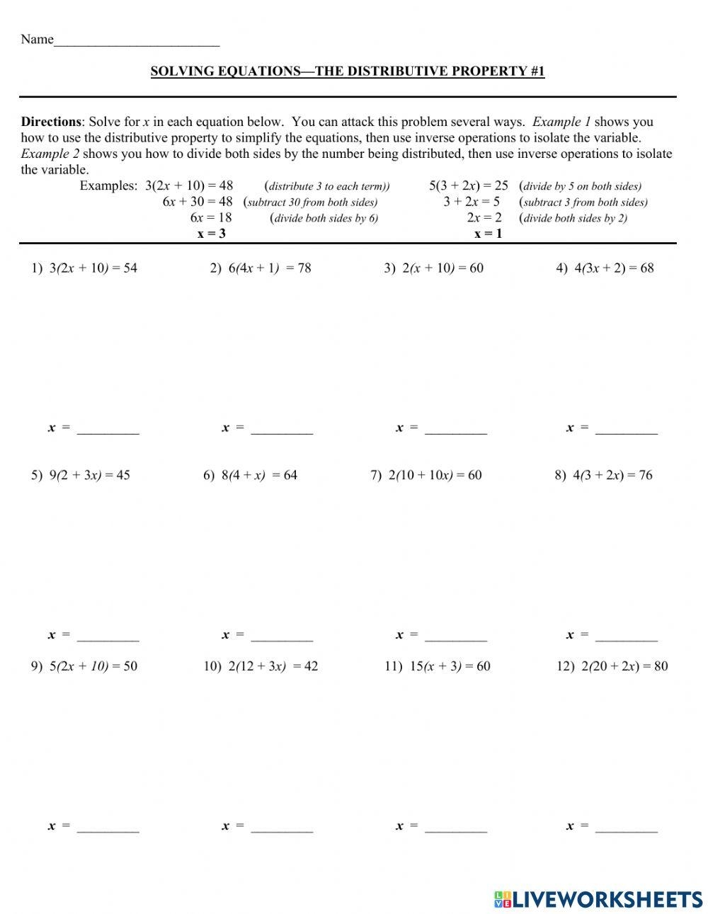 Working with the distributive property requires a good understanding of basic algebraic operations and the ability to manipulate equations to isolate unknown variables. By practicing with worksheets that focus on solving equations with the distributive property, you can improve your skills and become more confident in your ability to solve mathematical problems.