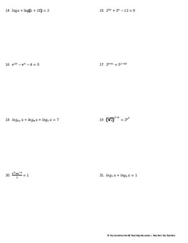 By following these steps and practicing with the provided problems, students can gain confidence in their ability to solve equations using logarithms. This worksheet is designed to help reinforce the concepts learned in class and improve problem-solving skills.