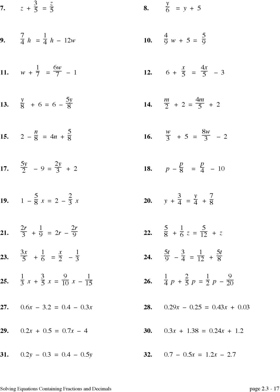 Fraction equations can often be challenging for students to solve, but with the right approach and practice, they can become more manageable. One effective way to help students master solving fraction equations is through worksheets that provide them with practice problems and step-by-step solutions. These worksheets allow students to work through various types of fraction equations, helping them build their skills and confidence in this area of mathematics.