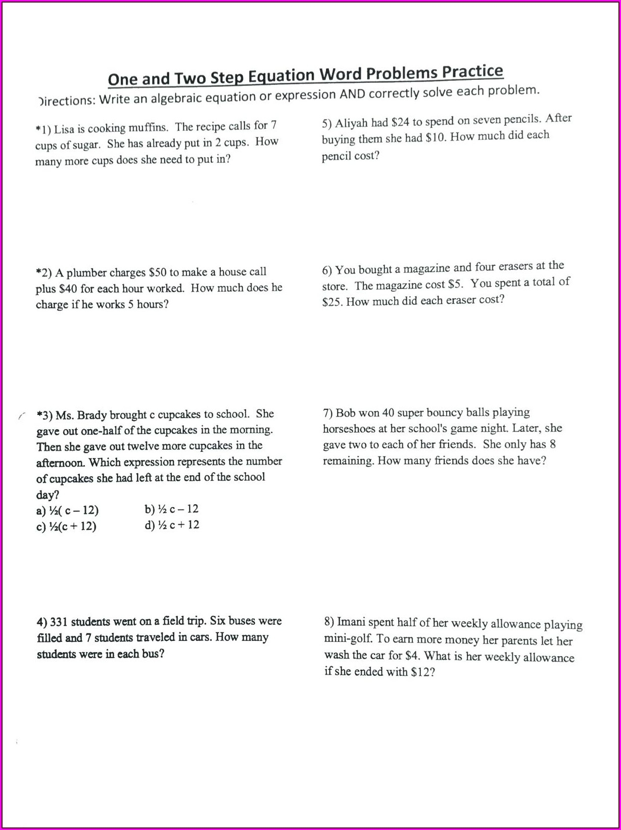 One effective way to practice solving multi-step equations is by using a worksheet specifically designed for this purpose. These worksheets typically provide a variety of equations for students to work through, ranging in difficulty from simple two-step equations to more complex equations with multiple variables. By working through these problems systematically, students can develop a step-by-step approach to solving multi-step equations and gain confidence in their ability to tackle challenging math problems.