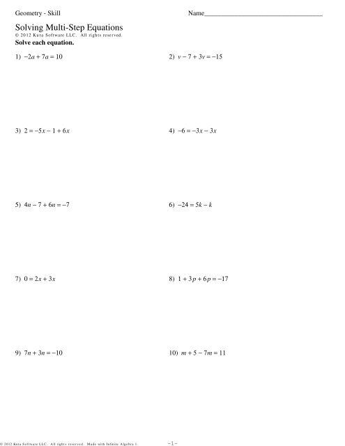Multi Step Equations Worksheet 8th Grade Equations Worksheets