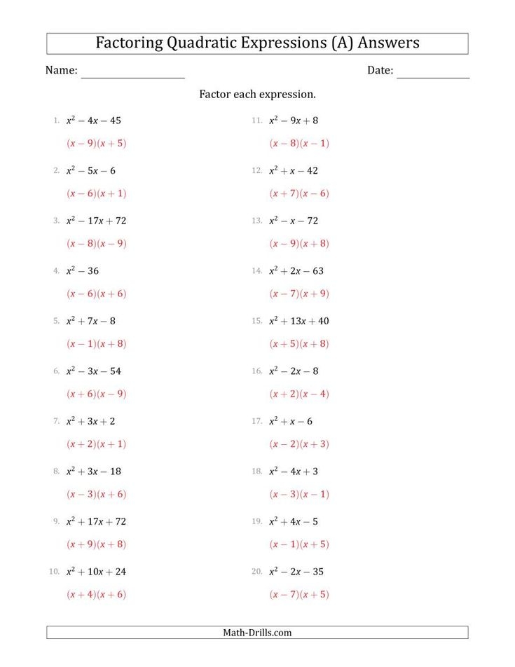 Quadratic equations are a fundamental part of algebra, and being able to solve them is a crucial skill for students to master. One of the most common methods for solving quadratic equations is factoring. Factoring involves breaking down the quadratic equation into its simplest form, making it easier to find the values of the variables. With the help of a worksheet in PDF format, students can practice solving quadratic equations by factoring and improve their understanding of this important concept.