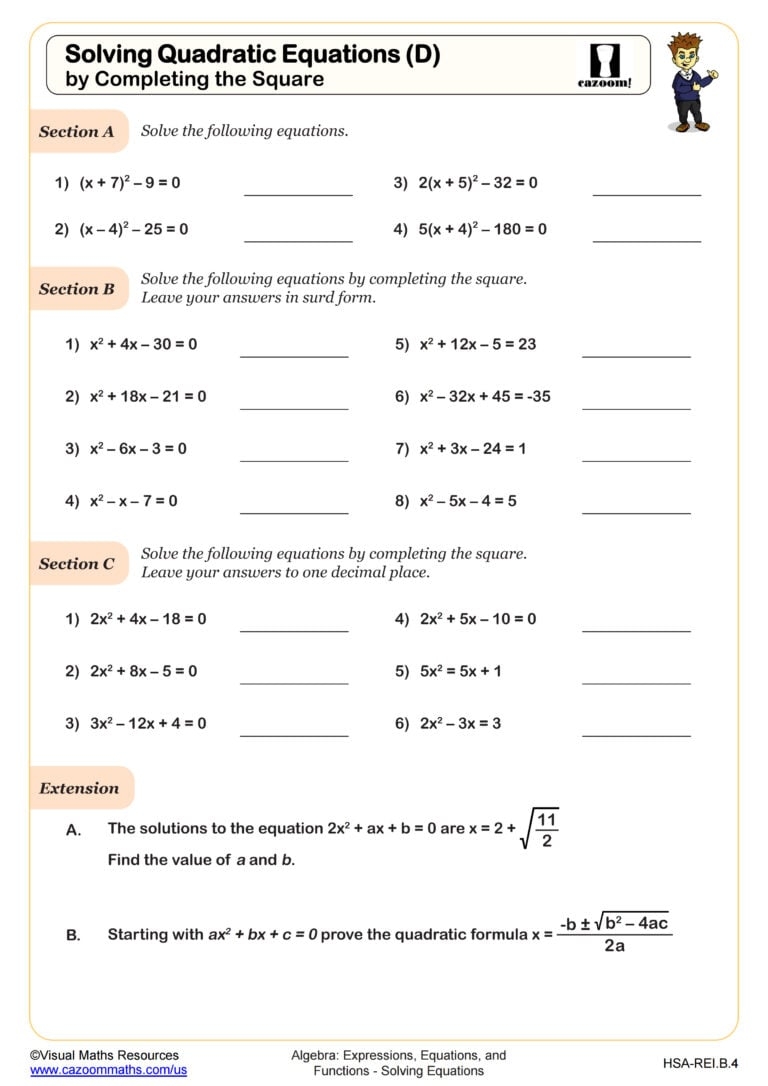 Practice completing the square with a variety of quadratic equations on the worksheet to strengthen your understanding of the method. Pay attention to each step and be patient with the process, as mastering completing the square will make solving quadratic equations more manageable and efficient. With dedication and practice, you will become more confident in your ability to solve quadratic equations using completing the square.