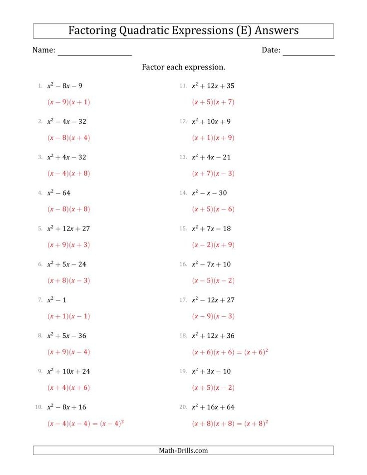 Factoring quadratics can be a challenging concept for students to grasp, but with practice and patience, it can become second nature. Solving quadratic equations by factoring worksheet can help students reinforce their understanding of the factoring process and improve their problem-solving skills.
