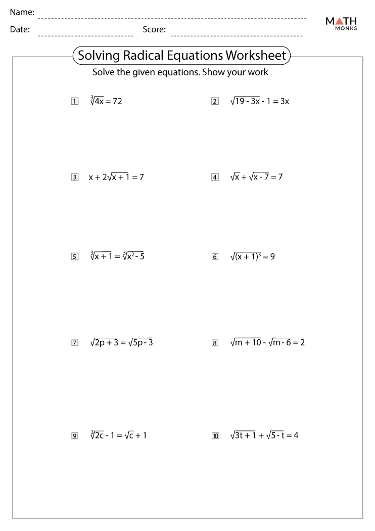 Solving Radical Equations Worksheet Pdf Equations Worksheets