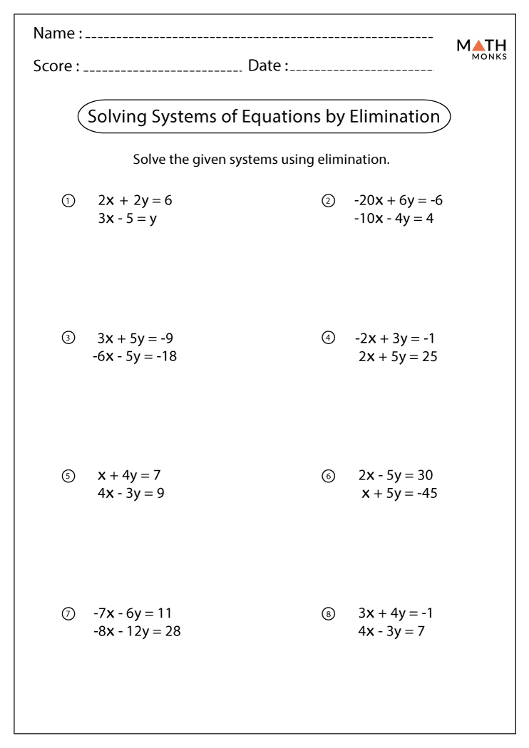 Another popular method for solving systems of equations is the elimination method. This method involves adding or subtracting the equations in a system to eliminate one of the variables, allowing students to solve for the remaining variable. Worksheets that focus on the elimination method can help students practice their algebraic manipulation skills and improve their ability to solve systems of equations efficiently.