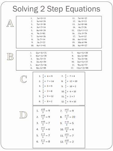 Download and Print solving two step equations worksheet Listed below