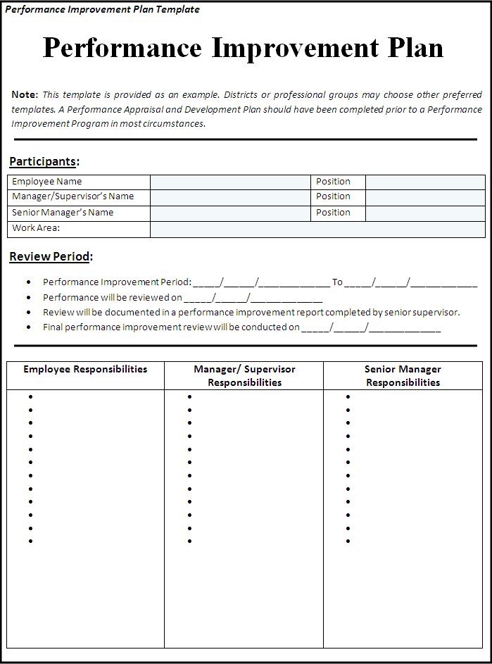 Performance Improvement Plan Template