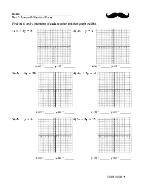 Another type of problem that may be found on these worksheets is graphing equations in standard form. Students are required to plot the x and y-intercepts of the equation to create an accurate graph. This visual representation helps students see the relationship between the equation and its graph, enhancing their understanding of linear equations.