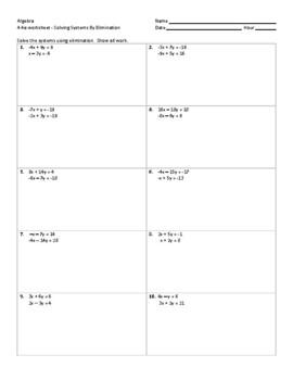 In conclusion, a system of equations elimination worksheet is a beneficial resource for students studying algebra and looking to enhance their skills in solving systems of equations. By practicing on such worksheets, you can improve your algebraic abilities, strengthen your problem-solving skills, and gain confidence in tackling complex equations. So, grab a system of equations elimination worksheet and start sharpening your algebra skills today!